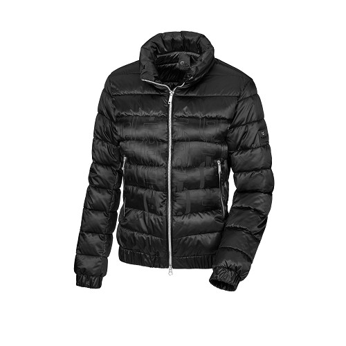 スポーテッィー中綿ジャケット。blackのみサテン生地。その他カラーは光沢ナイロン生地。ジップはメタルルックで華やか。