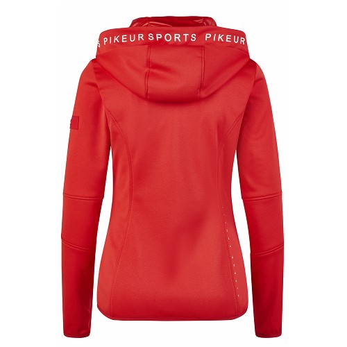 サマーフリースジャケット。表地はスムースルックのメランジ風生地・内側は起毛生地。フードはマグネットで固定され騎乗時に便利。