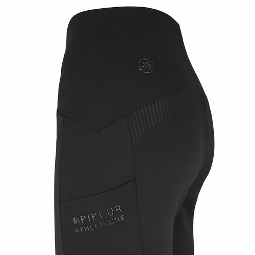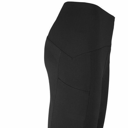 マットルック高機能ストレッチ生地・バランスグリップレギンス。程よい締め付け&ハイウエスト&ヒップのストライププリントでスタイルアップ効果◎両サイドに携帯用ポケット。裾はソックス仕様で脱ぎ履き簡単!