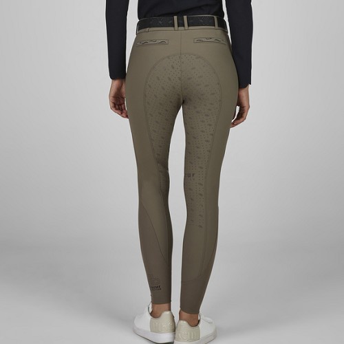 マットルック冬用ソフトシェル生地・フルグリップブリーチ。裏側フリース生地。2フロントポケット(後ろポケットはフェイク)裾はソックス仕様で脱ぎ履き簡単!腿にラインストーン装飾。