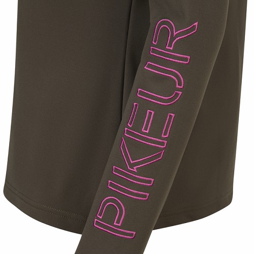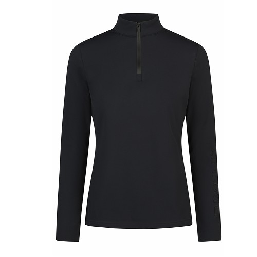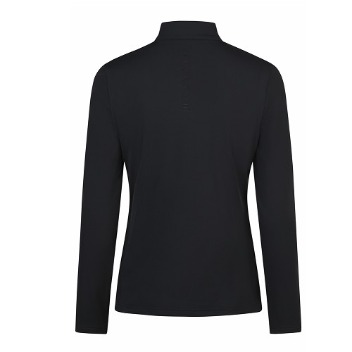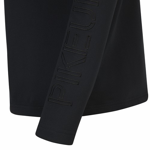 伸縮性抜群の高機能生地ジップタートルネックシャツ。背中と袖にロゴ刺繍。裏起毛。