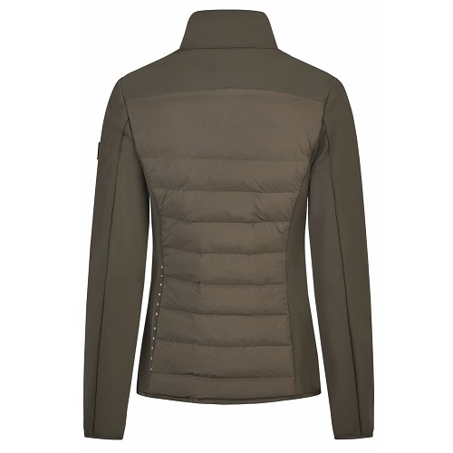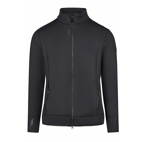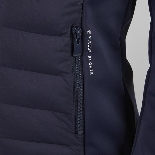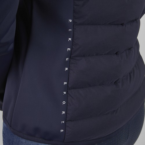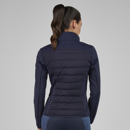 軽量ハイブリッドジャケット。ソフトシェル生地部分は裏側フリース。2wayジップ+ジップポケット。腕に立体ロゴラベル。前後にさりげないロゴプリント。