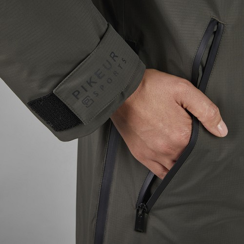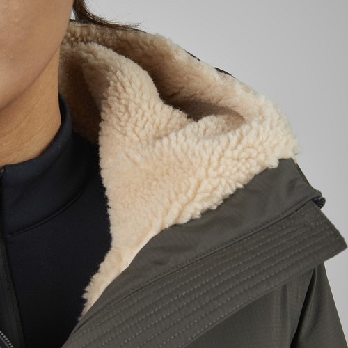 ウォータープルーフジャケット。ふわふわテディ裏地。フロント・ポケット・サイドスリット全て防水ジップ。フード&袖口&スリットにブラックロゴプリント。フードはマグネットで固定可。