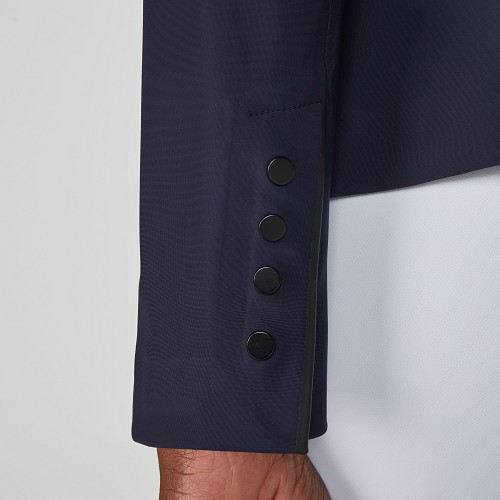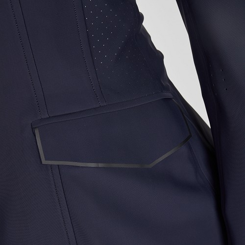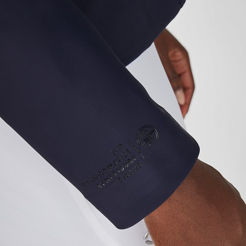 伸縮性抜群なニット生地&パンチング生地のハイブリッド・競技用ジャケット。裏地無し。フリージャンプ社のエアバッグベストと互換性あり。