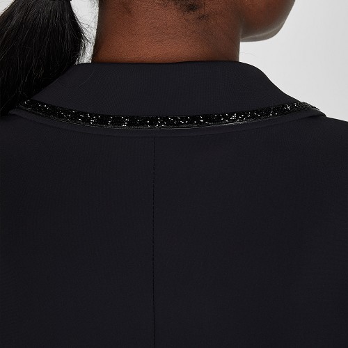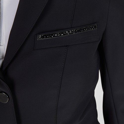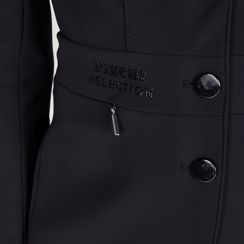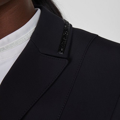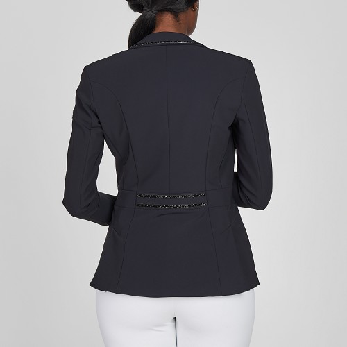 クリスタル装飾が華やかな競技用ジャケット。通気性抜群のジャージー生地&エアメッシュ裏地。フリージャンプ社のエアバッグベストと互換性あり。