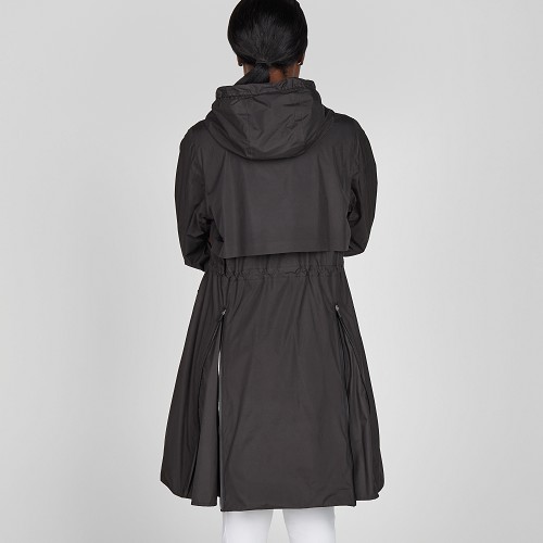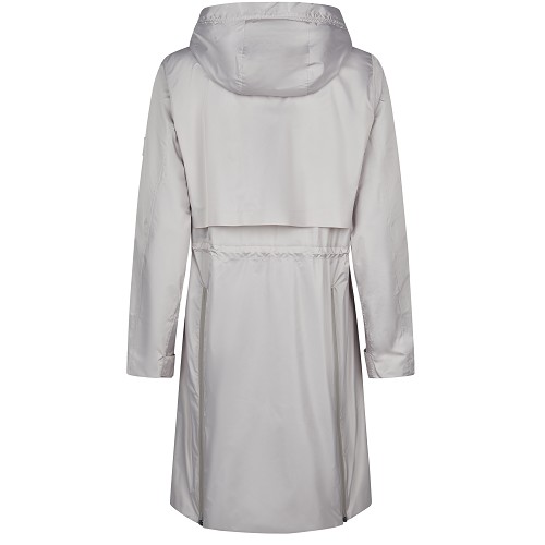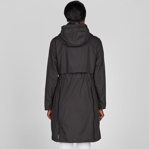 フード付きロングレインコート。軽量アウター生地&メッシュ裏地。騎乗に便利なサイドジップスリット。