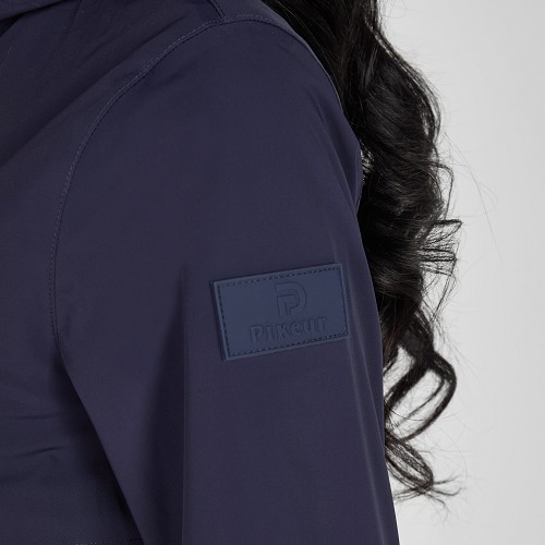 ウォータープルーフジャケット。柔らかくて伸縮性抜群のアウター生地&裏地メッシュ。防水2wayフロントジップ+ジップポケット。フードはマグネット固定で騎乗時に便利◎フリージャンプ社のエアバッグベストと互換性あり。