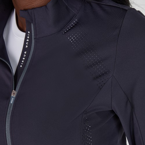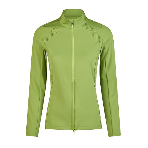 スタンドカラー速乾生地薄手ジャケット。襟と背中の裾はメッシュ生地切替。