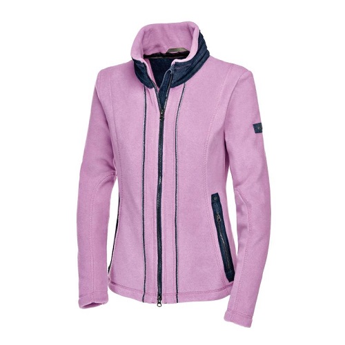 立ち襟やポケット部分にデニム地を使用したフリースジャケット。