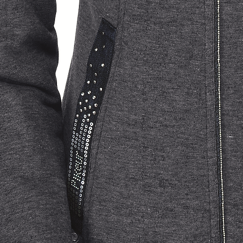 ミックス杢生地を使用したカジュアルなフード付きジャケット。身頃部分の裏地にはテディファーを用いており着心地抜群です。